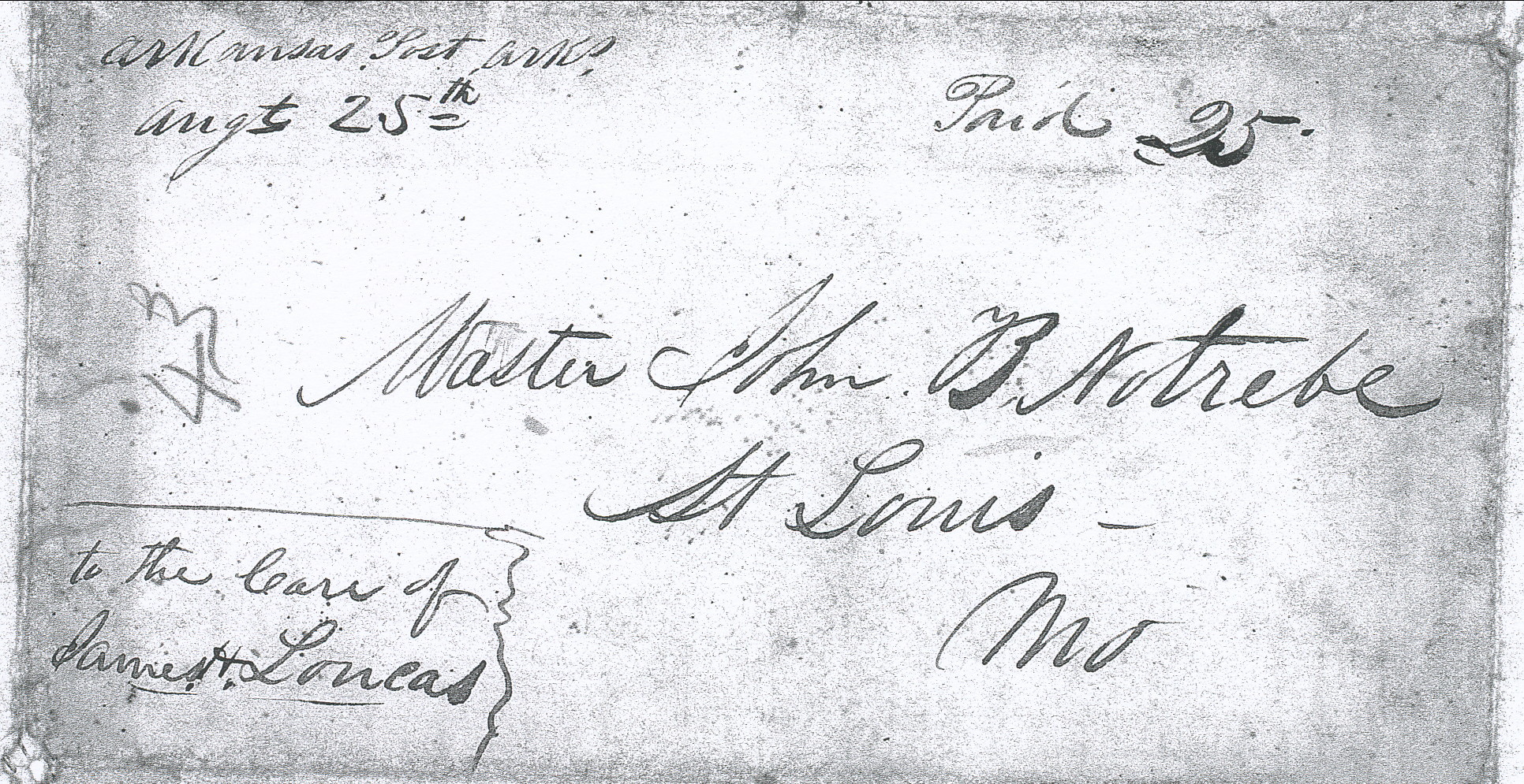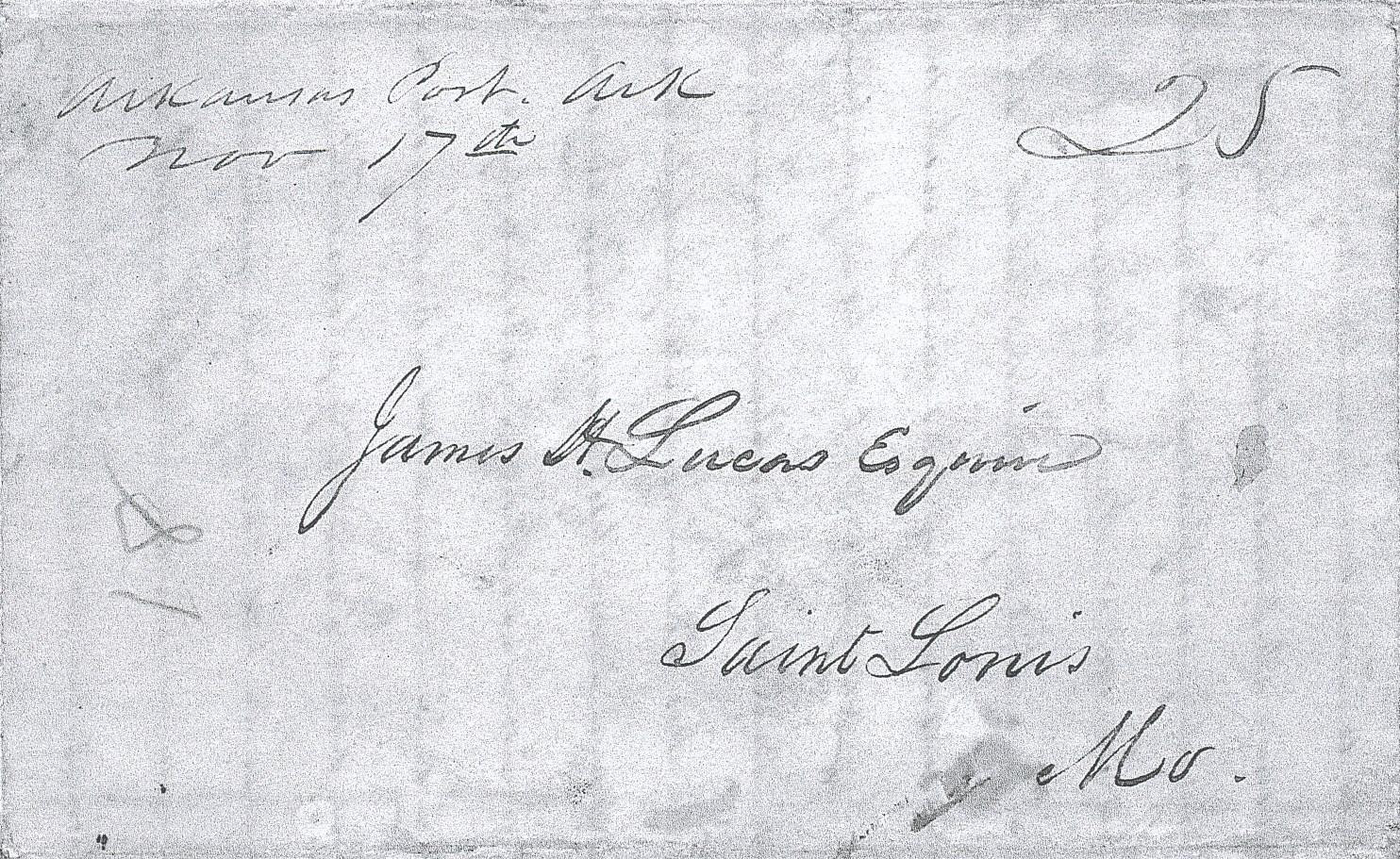 | Arkansas Post | 1838-04-22 | Due | 25 | St. Louis, Missouri | MS Town, date, and rate Ark.History Commission files John Knight MS000136 | Arkansas Post AR 1838-04-22 AHC MS.000136 1822-45.jpg |