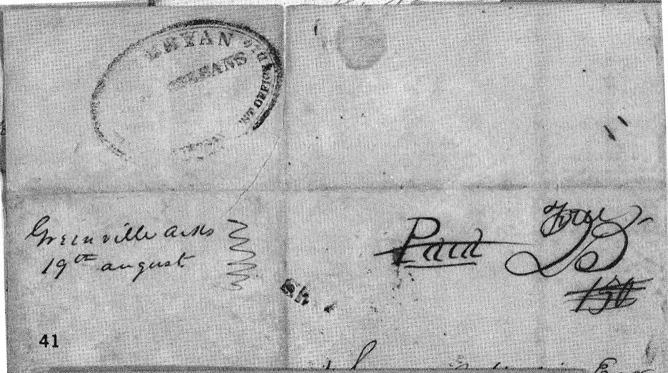 | Greenville | 1841-08-19 | Paid, then Free | 25 struck out, Free, then $1.50 added in Texas | Zaralla, Texas | Wm Bryant New Orleans agent of Texas HSP | Greenville Ark 1841-08-19 ms rkaufman_sale71_lot41.jpg |