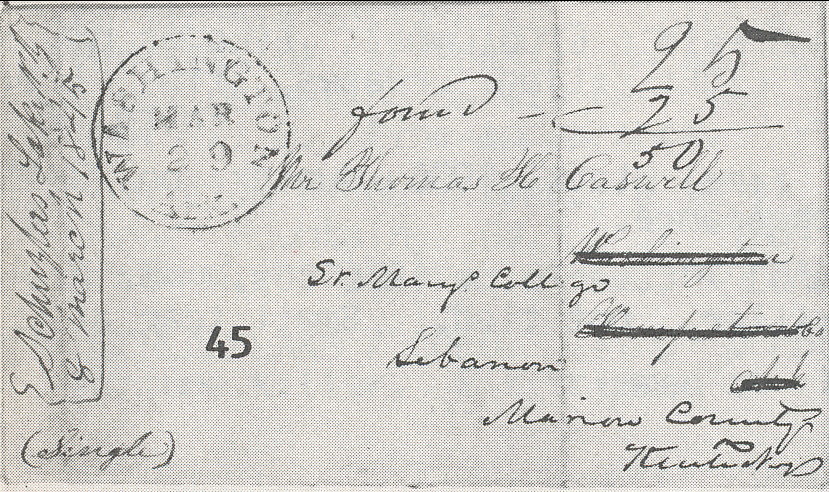 | Washington forwarding letter from Schuzlas Lake New Jersey | 1845-03-29 | Due | 25 + 25 more for forwarding | Forwarded to Lebanon Kentucky | Black Washington CDS ms rates | Washington 3-29-1845 Frwd 25+25 HSpellman_Sale53_Lot45.jpg |