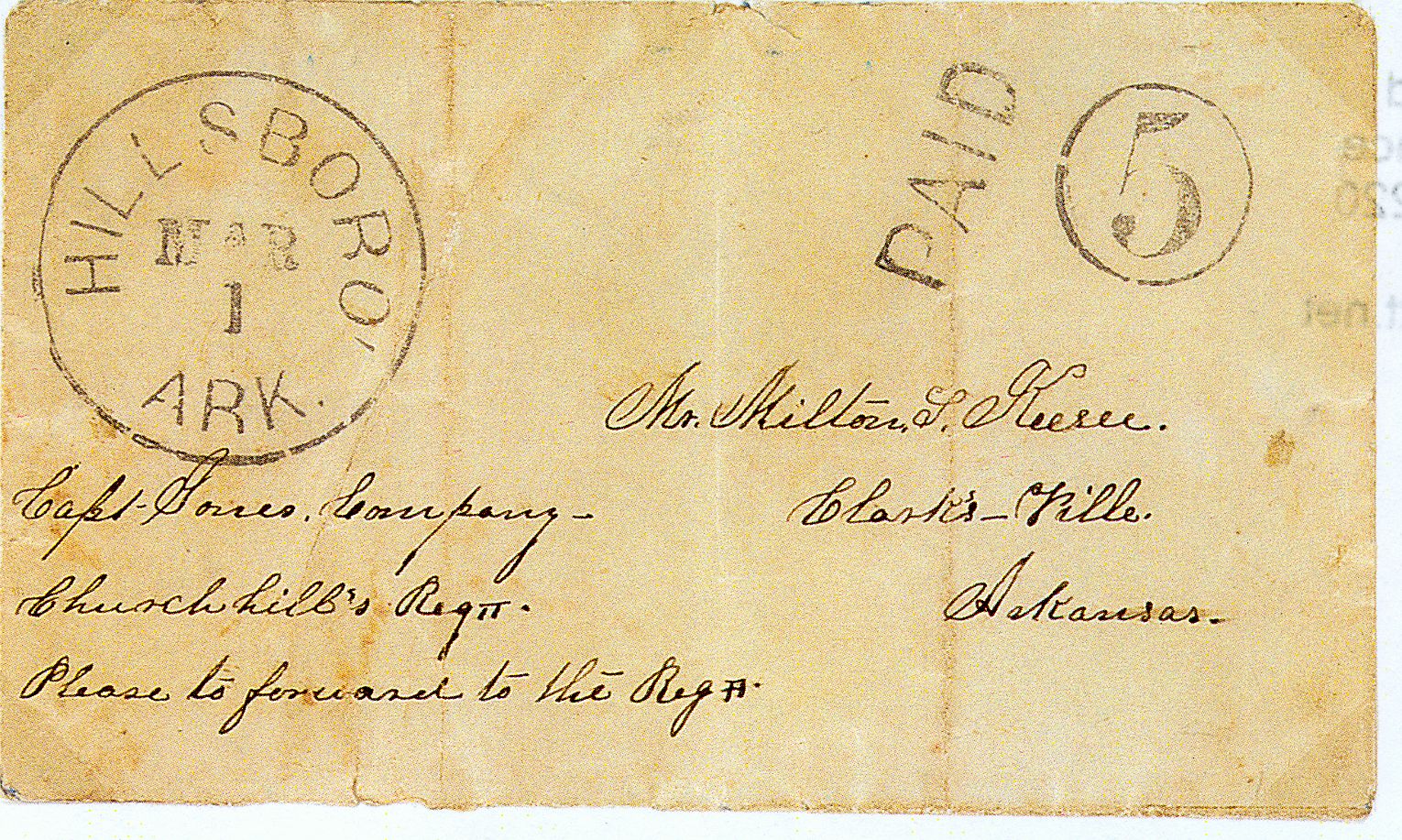 Next to Little Rock, Helena has the most CSA stampless covers extant. 22 different covers have been sold/reported. Those I have images of are presented below. The PAID 5 handstamp appears on only 3, plus two covers with this handstamp uprated to 10 manuscript. Why the Helena postmaster never used a 10 handstamp is unknown. Helena was occupied by the Union on July 15, 1862. The reason so many Helena covers still exist when many other Arkansas towns are either unique or have only 2-3 covers is that much of the Helena correspondence was to Carroll, Hoy in New Orleans, and the covers were recovered from thier legenday cover cache.