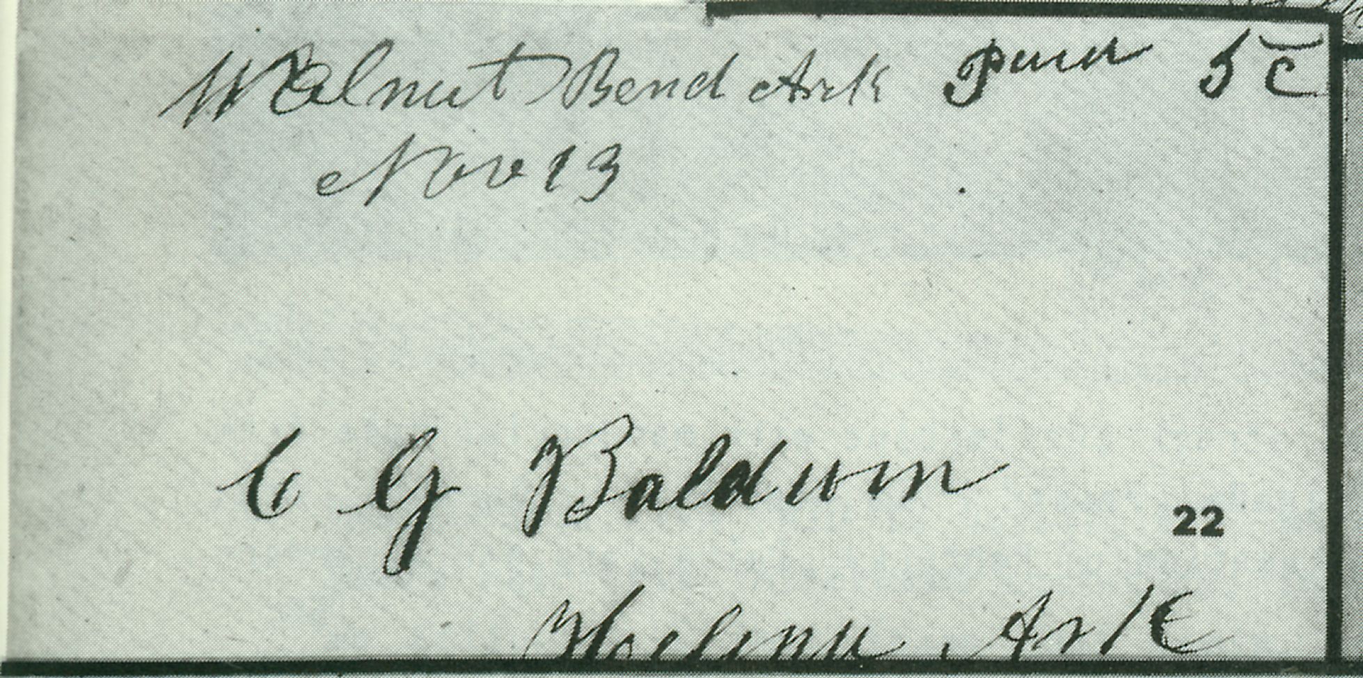 | Walnut Bend | November 13, 1861 | Due 5c manuscript | Helena, Arkansas | ghendershott_sale39_lot22 walnut bend paid 5c ms.jpg |