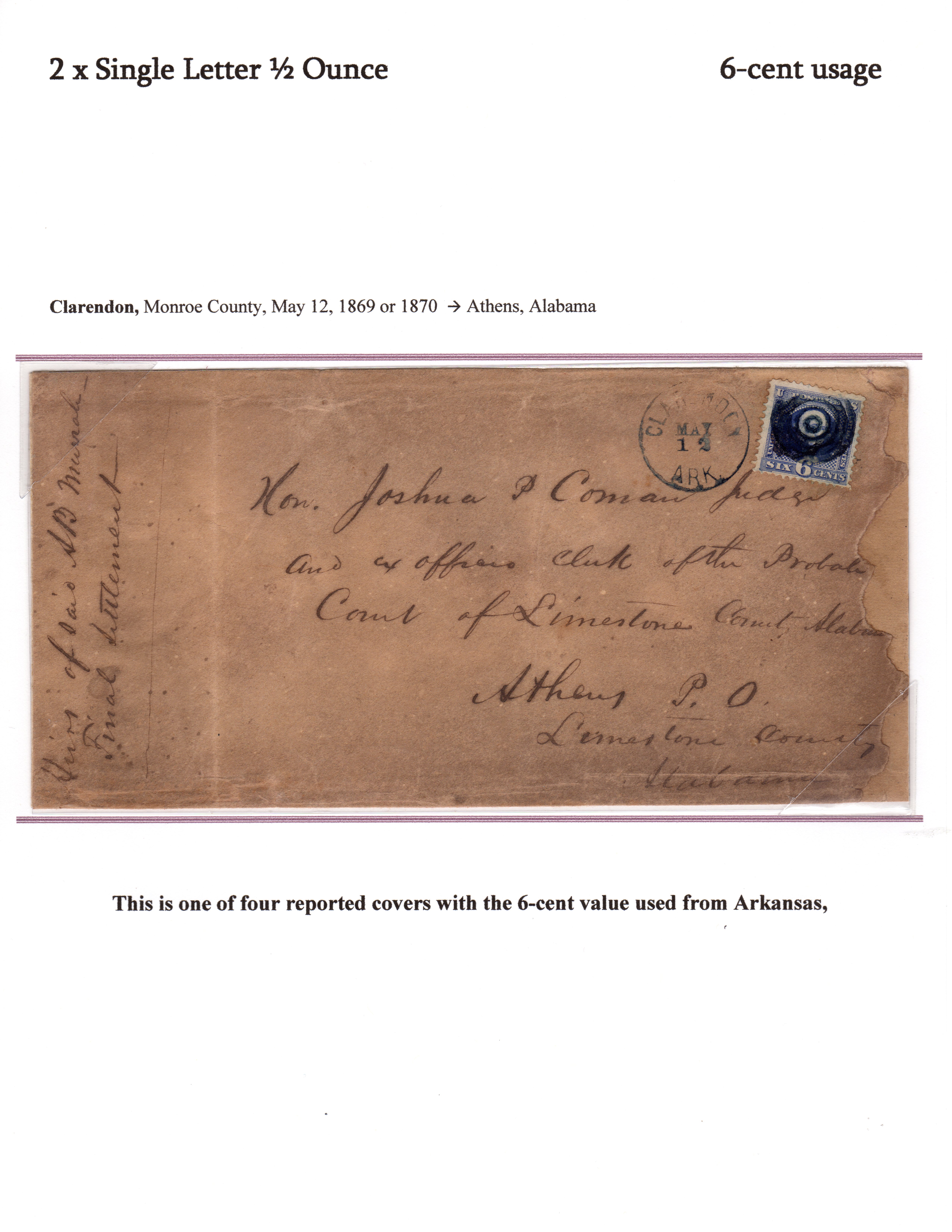 IW covers to & from Arkansas post 1870