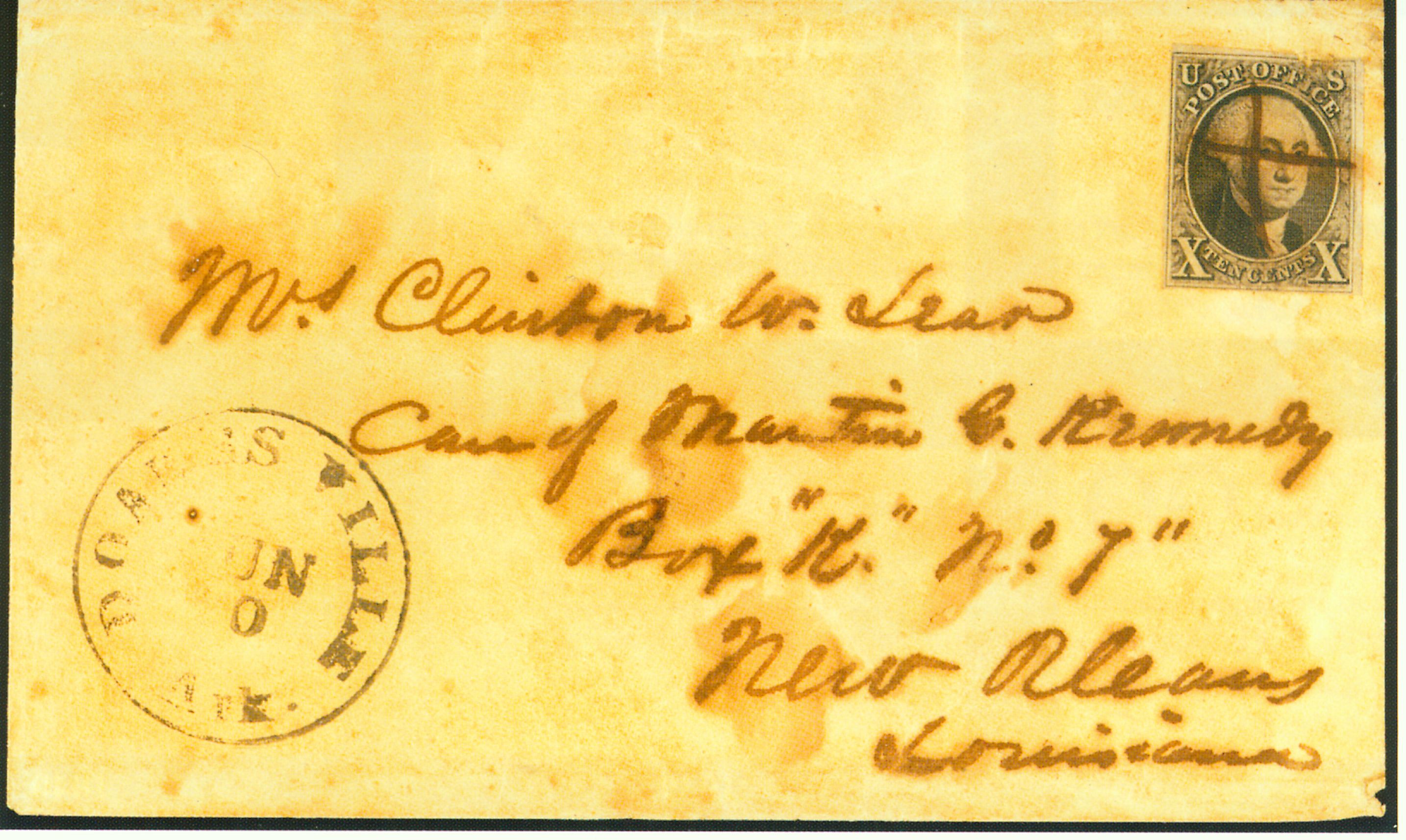 Covers containing the 5 cent and 10 cent US adhesives from 1847 are all prized by collectors, and those from post offices in the Indian Nations are especially valued. Most of these covers originated from a correspondence between Lt. Clinton Lear and his wife. According to Vince King, a Texas postal history collector with whom I have corresponded;