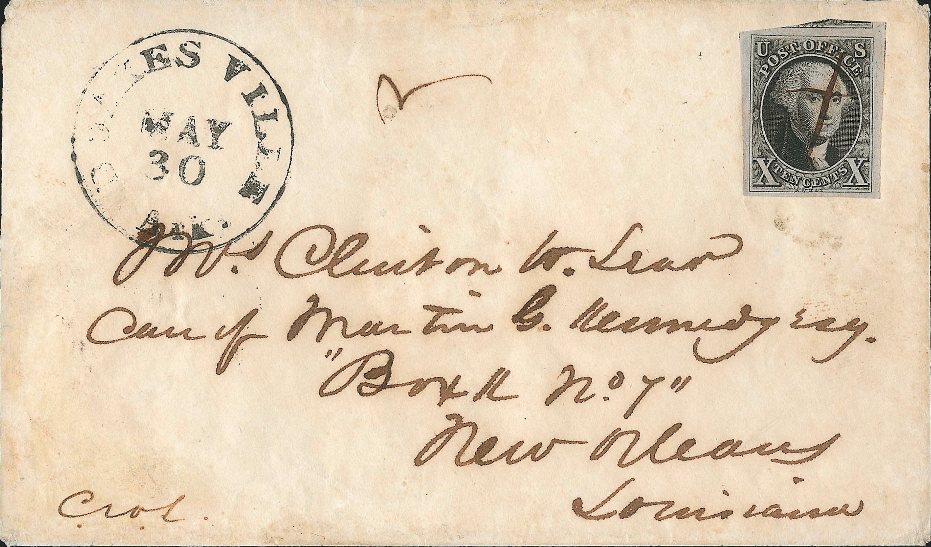 Covers containing the 5 cent and 10 cent US adhesives from 1847 are all prized by collectors, and those from post offices in the Indian Nations are especially valued. Most of these covers originated from a correspondence between Lt. Clinton Lear and his wife. According to Vince King, a Texas postal history collector with whom I have corresponded;