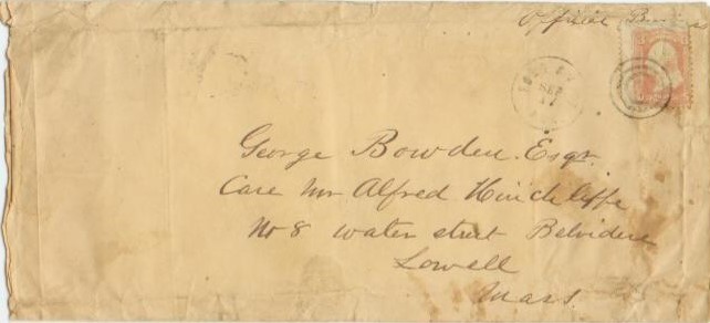 | Fort Smith | 1868-09-17 | Lowell, Massachusetts | Black CDS, black target cancel ties 3c adhesive to legal sized envelope | Ft Smith AR 1868-09-17 letter to Mass.jpg |