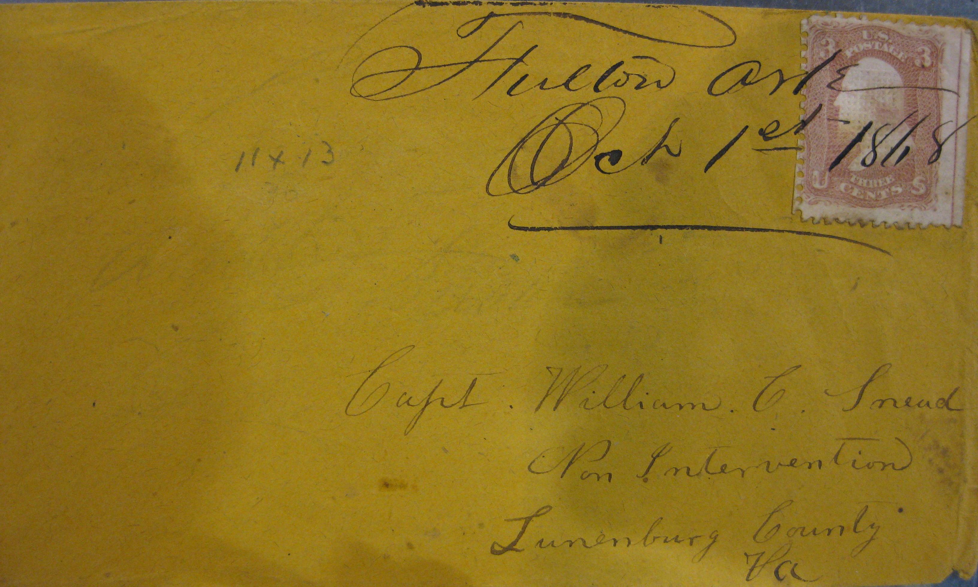 | Fulton | 1868-10-01 | Non Intervention, Virginia | Manuscript town name, pen cancelled 3 cent grilled adhesive, yellow cover | Fulton 10-1-68 3c rose grill APS Richmond 2010.jpg |
