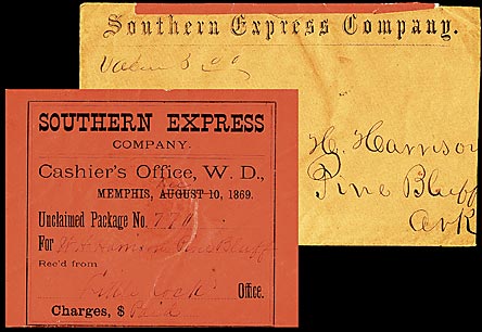 | Memphis, Tennessee | 186x-07-10 | Princeton Arkansas via Pine Bluff | Blue CDS, Blue cork ties 3c adhesive on Southern Express cover | RSiegel_Sale_927_Lot_1351.jpg |