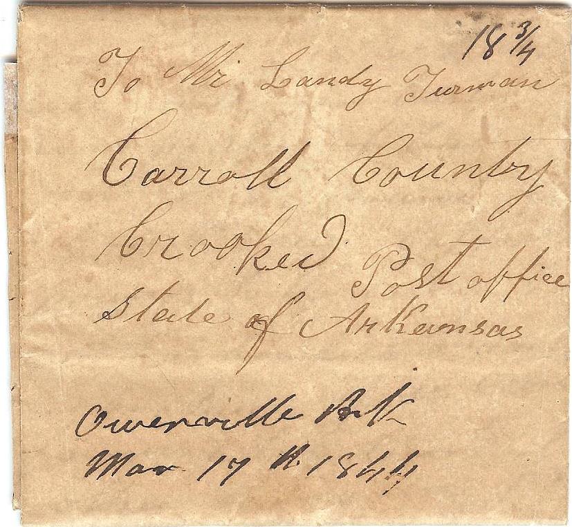 | Owensville | 1844-03-17 | due | 18 3/4 | Crooked, Carroll County, Arkansas | Ms Town Name, date and rate | Owensville AR 1844-03-17 JPalazolo Collection.jpg |