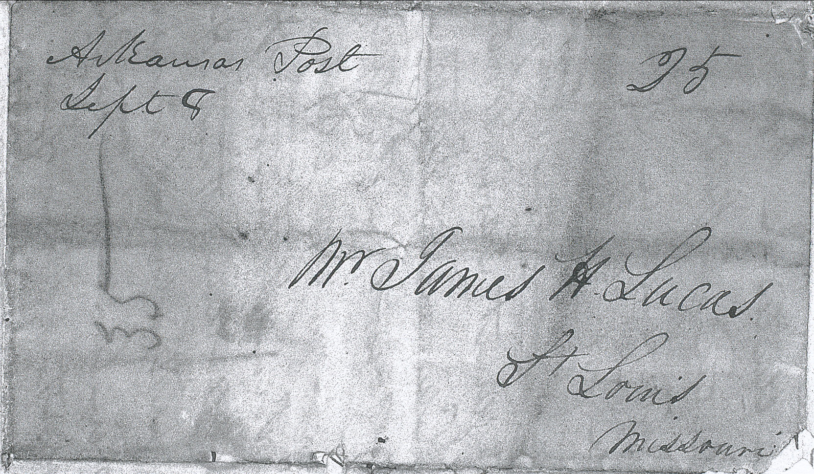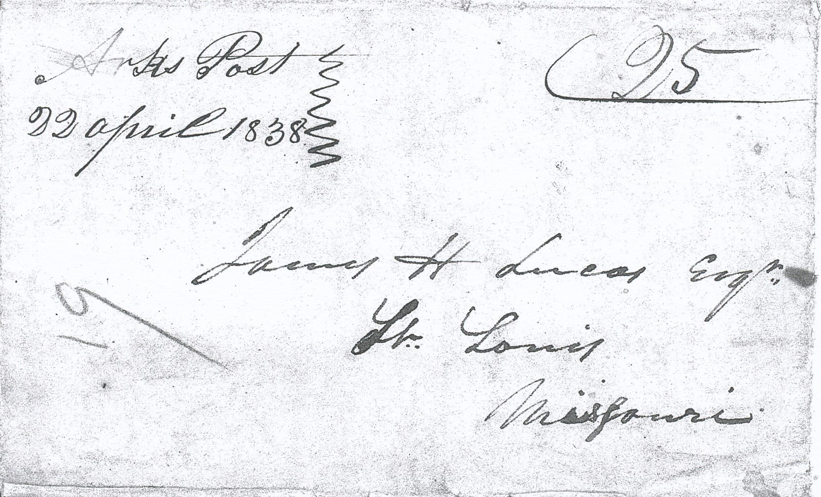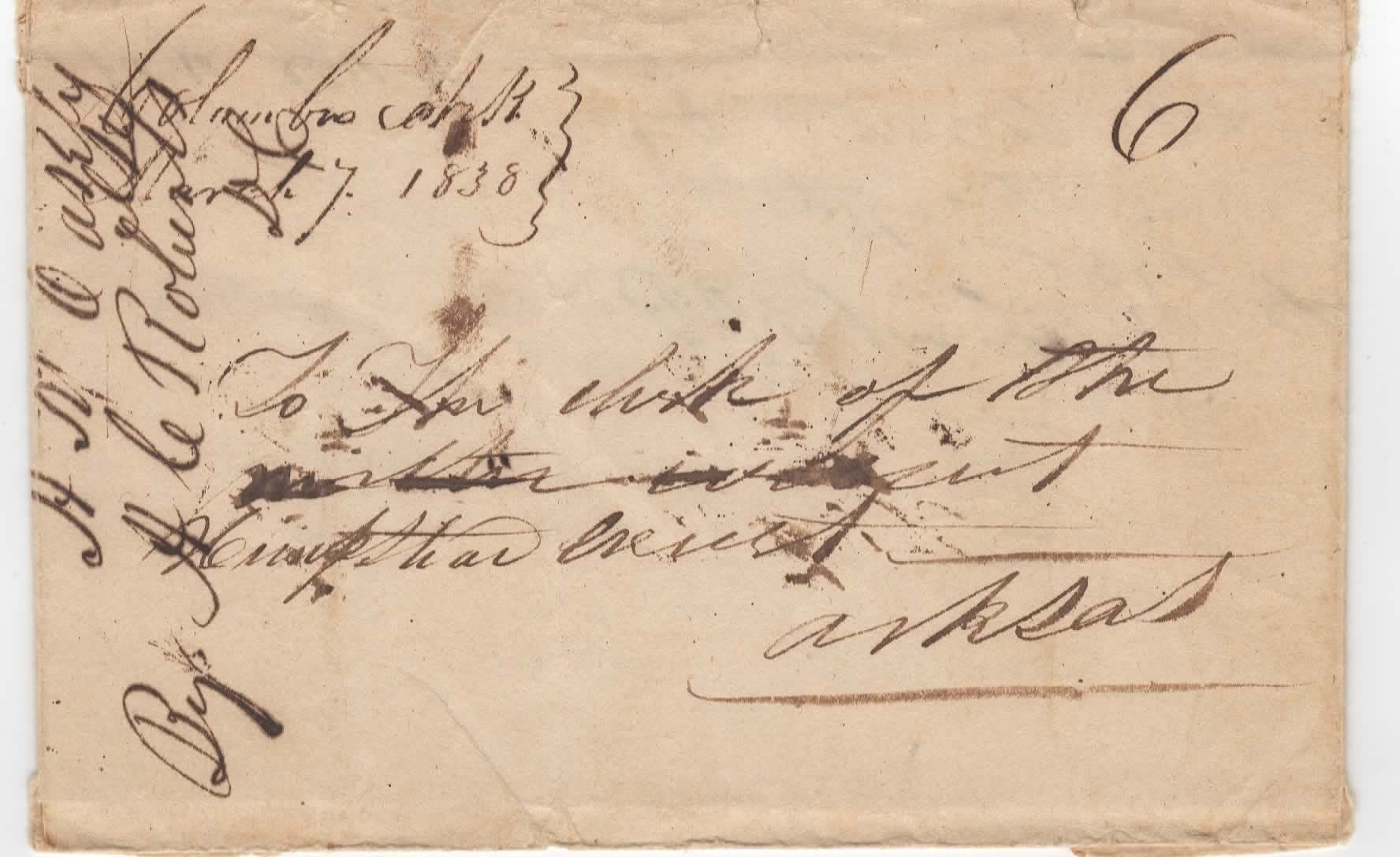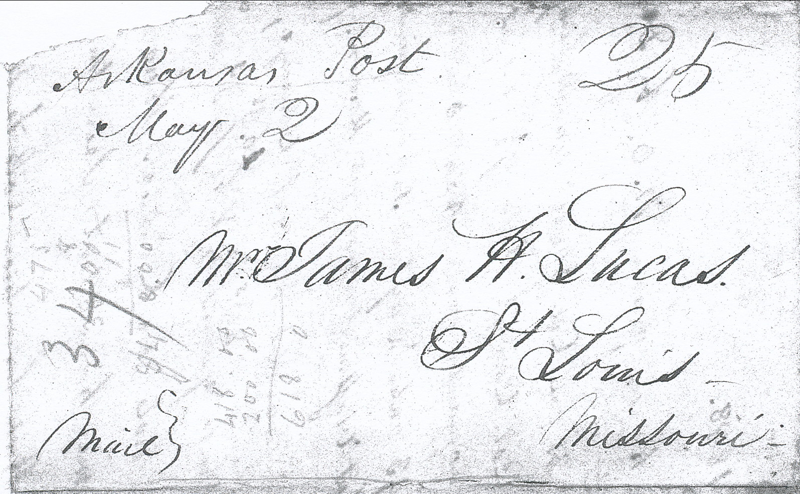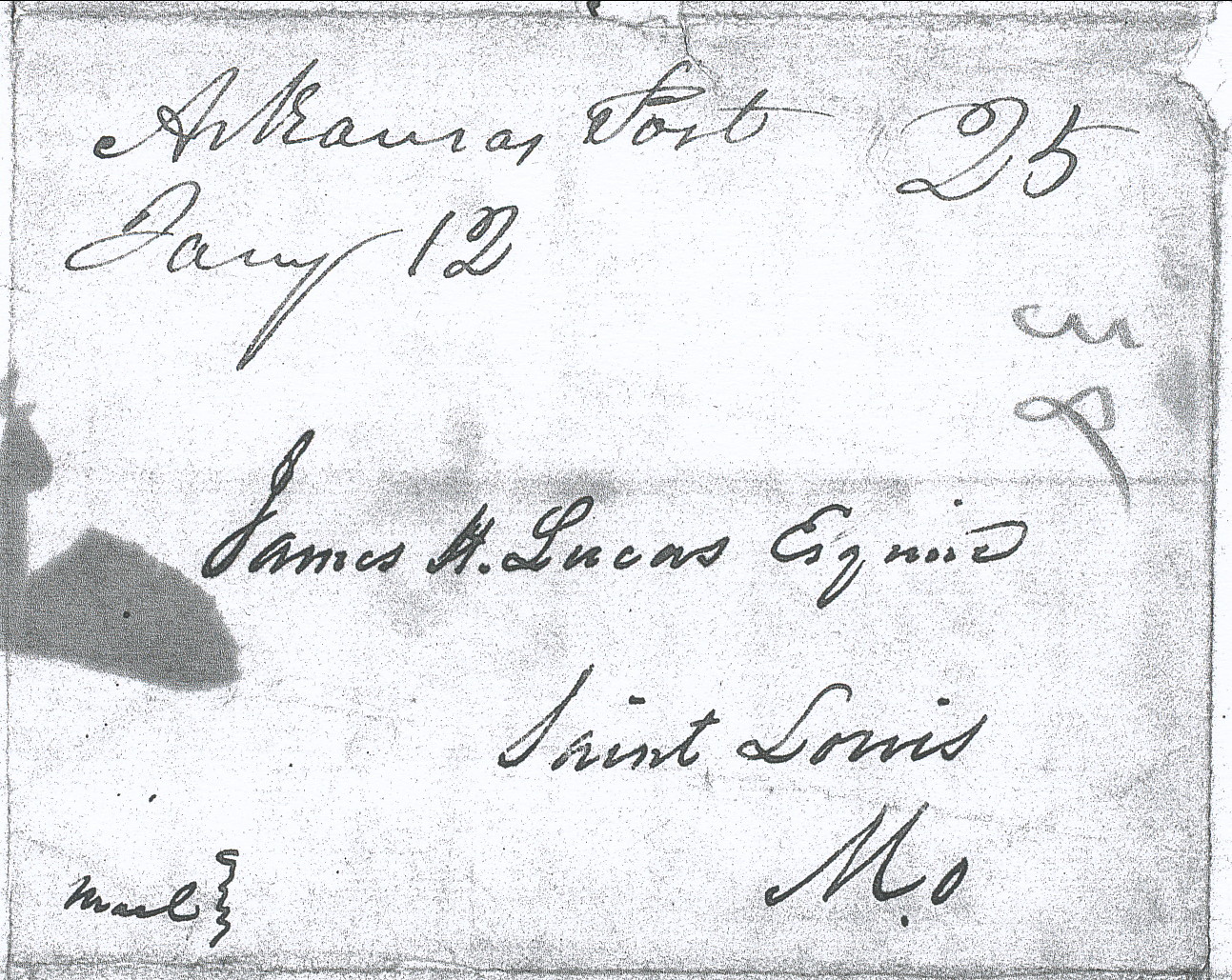 | Arkansas Post | 1838-04-22 | Due | 25 | St. Louis, Missouri | MS Town, date, and rate Ark.History Commission files John Knight MS000136 | Arkansas Post AR 1838-04-22 AHC MS.000136 1822-45.jpg |