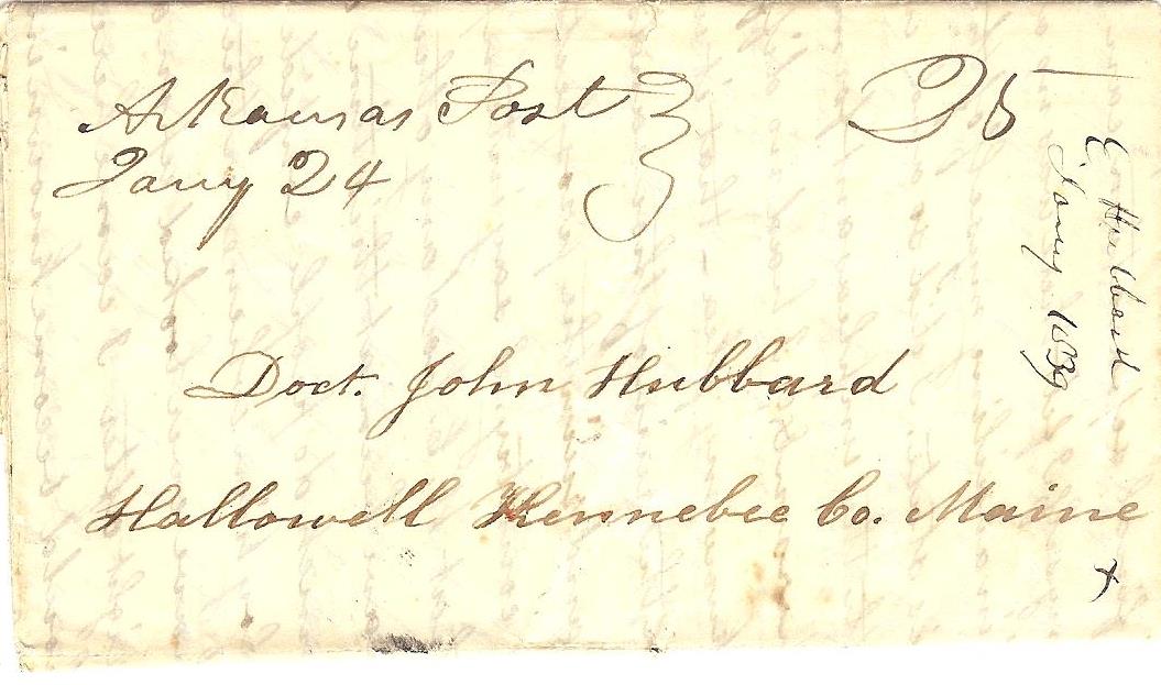 | Arkansas Post | 1839-01-24 | due | 25 | Hollowell, Kennebec County, Maine | ms Town Name, date, and rate | Arkansas Post AR 1839-01-24 JPalazolo Collection.jpg |