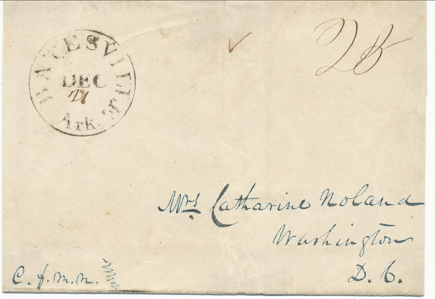 | Batesville | 1839-12-21 | due | 25 | Washington, DC | Black CDS ms 25 | Batesville AR 1839-12-21 BRoberts Collection.jpg |