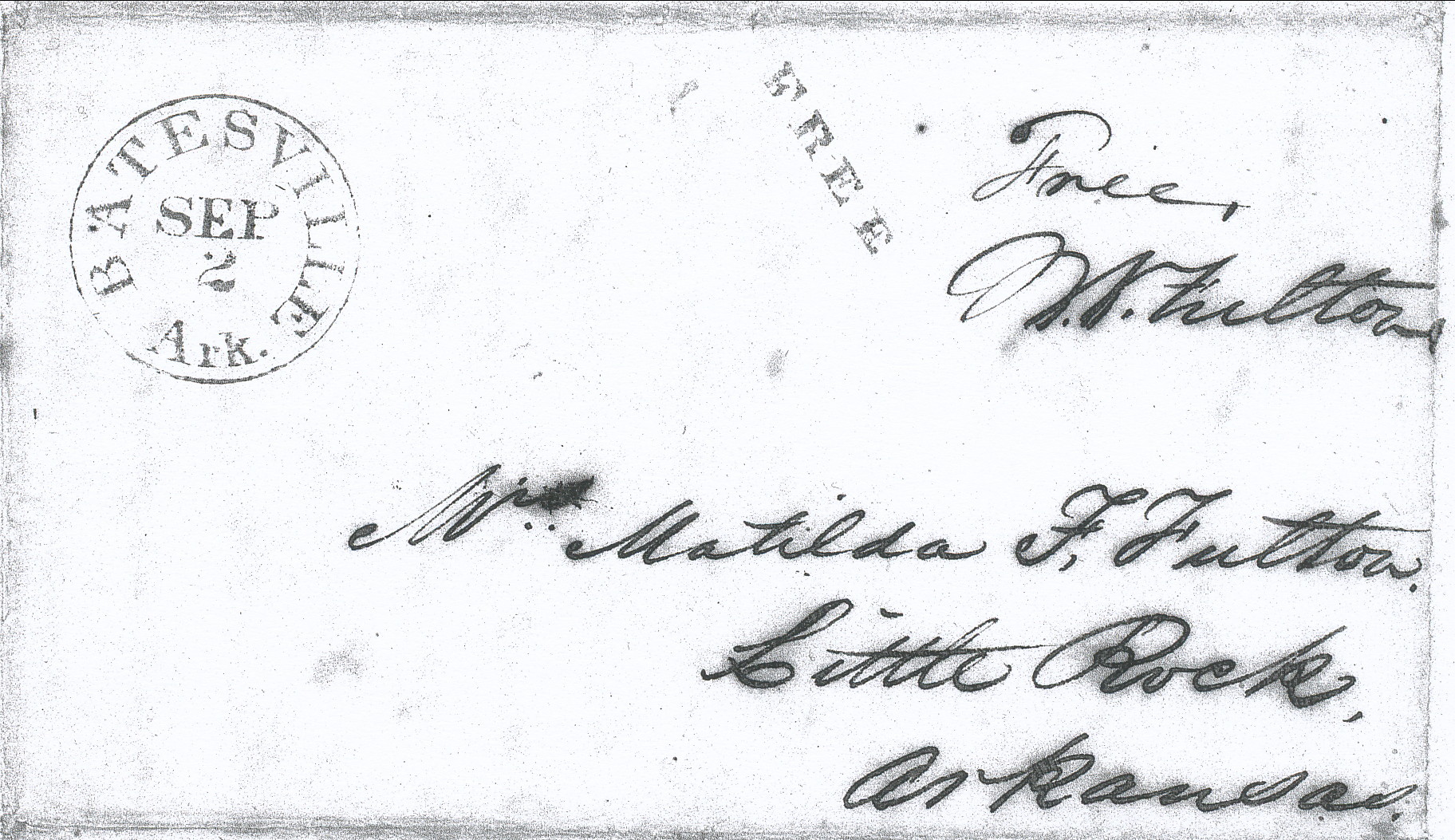 | Batesville | 1843-09-02 | | FREE | Little Rock Arkansas | Ark. History Commission Files | Batesville AR 1843-09-02 Red CDS Red FREE AHC MS.000066 1843-1890.jpg |