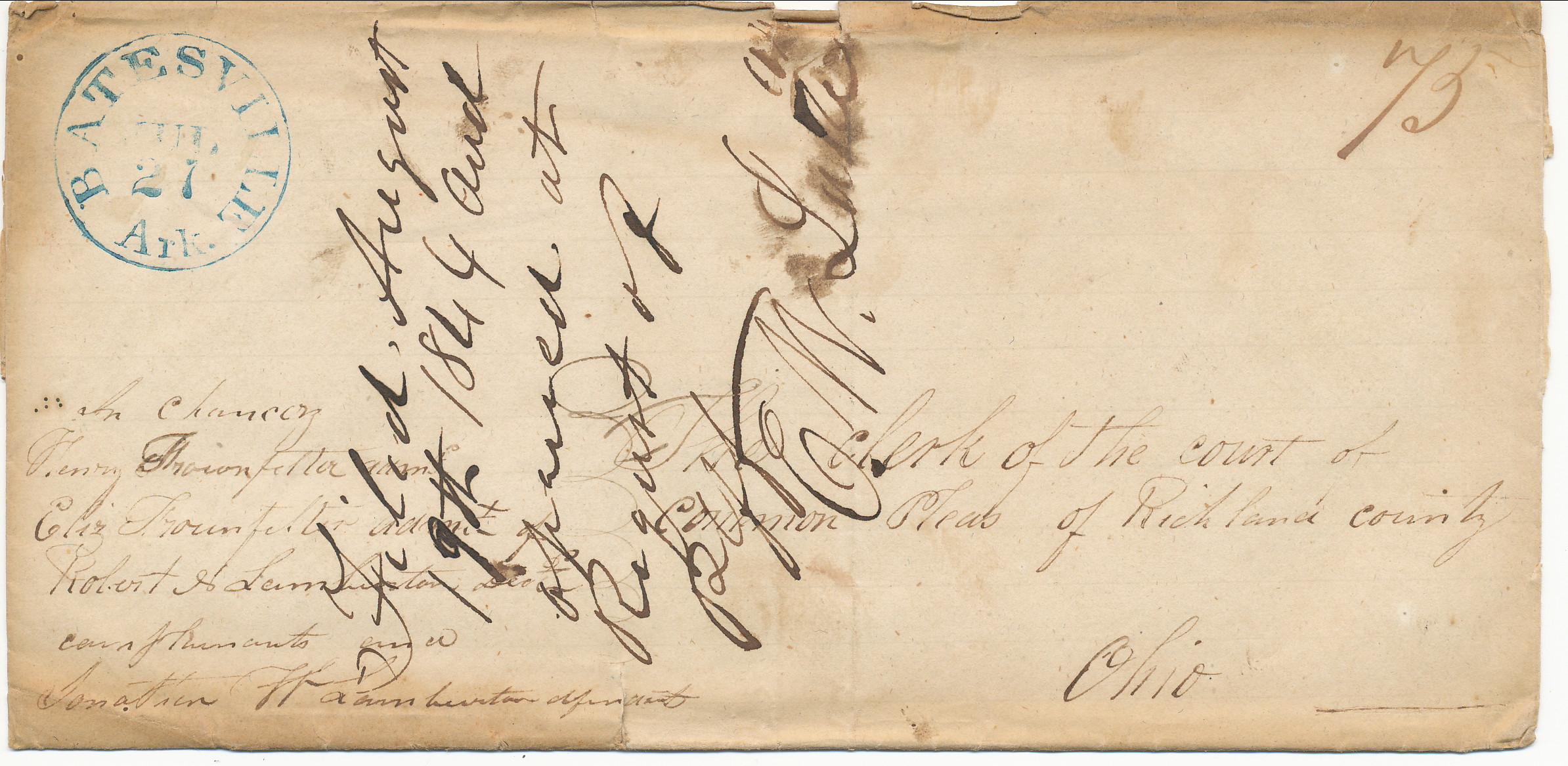 | Batesville | 1844-07-27 | Due | 75 cents | Richland County Ohio | Blue CDS ms 75 | Batesville AR 1844-07-27 Blue CDS BRoberts Collection.jpg |