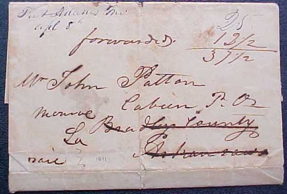 | Cabeen | 184x-04-x | Due | 25 + 12.5 forwarding | From Mississippi, forwarded from Cabeen to Monroe LA | Only letter from Cabeen i have seen | Cabeen Arkansas forwarding from Miss to La eBay 6-30-11.jpg |