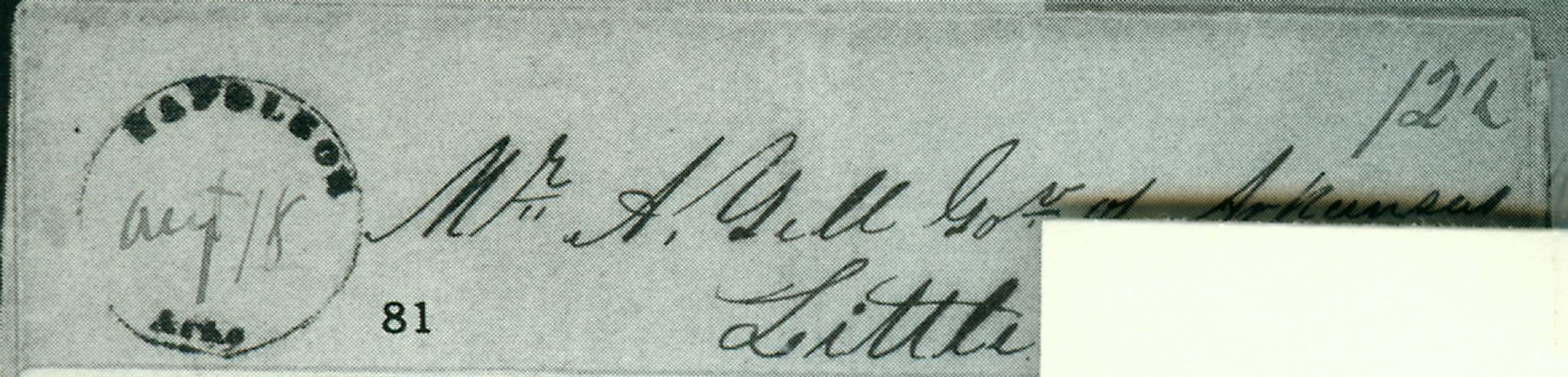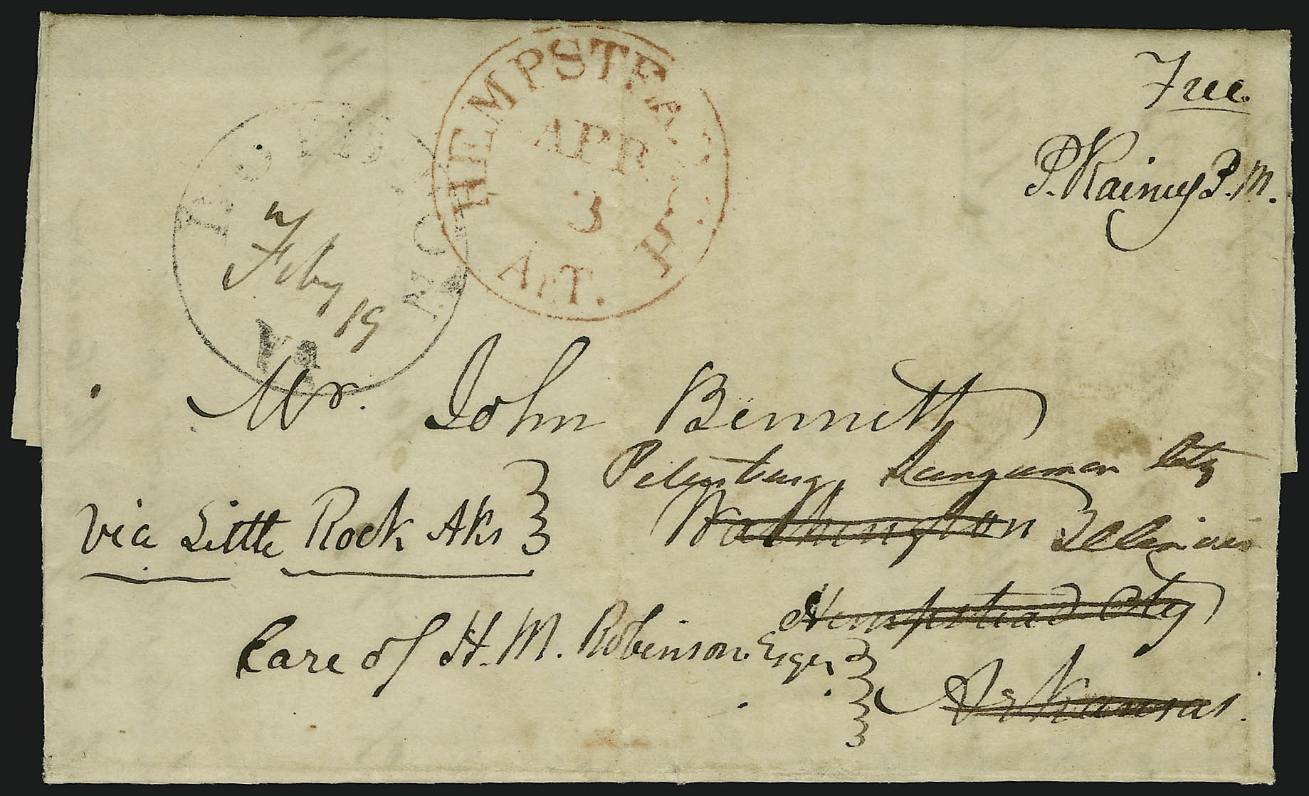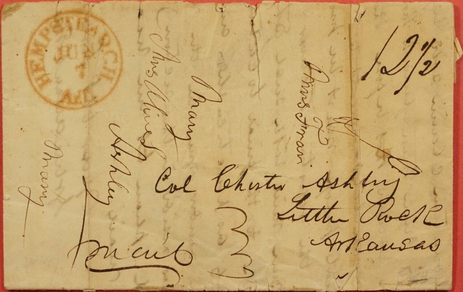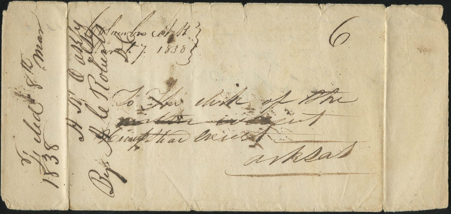 | Hempstead C.H. ArT | 1837-06-07 | Due | 12.5 cents | Little Rock, Arkansas | To Col. Chester Ashley. Red CDS | Hempstead C.H. ArT 1837-06-07 to Chester Ashley eBay20230209.jpg |