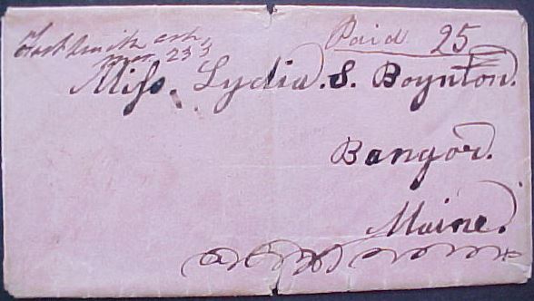 | Fort Smith | 183x-03-23 | Paid | 25 | Bangor Maine | Ms Town name, date and rate. | Fort Smith AR 183x-03-23 Paid 25 to Bangor MA eBay20150415.JPG |