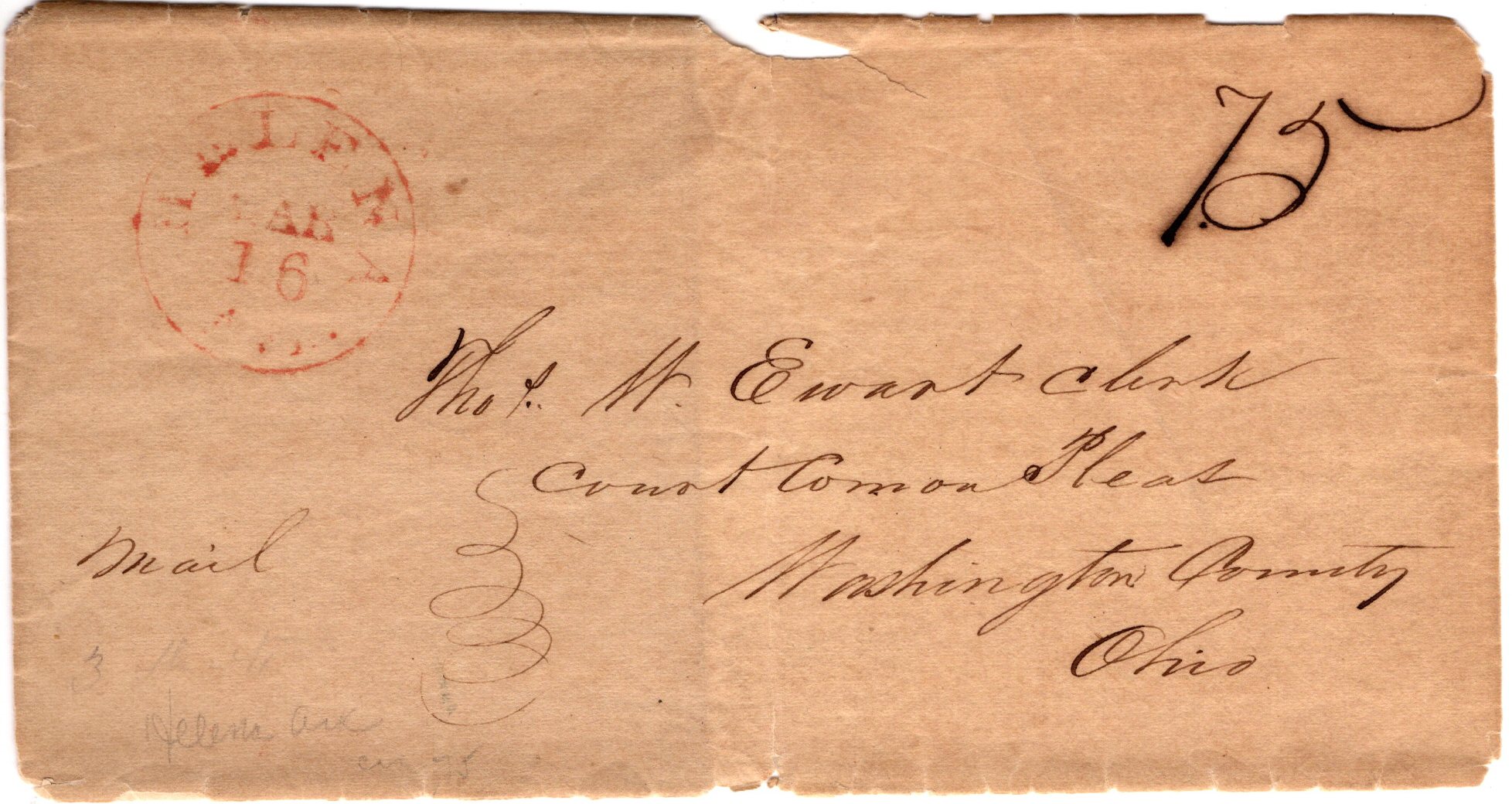 | Helena | 183x-03-16 | Due | 75 cents | Court of Common Pleas, Washington Co, Ohio | Red CDS HELENA/MAR 16/Ark ms "75" | Helena 183x-03-16 BRoberts Coll.jpg |