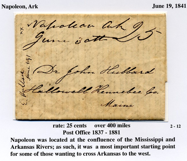 | Napoleon | 1841-07-03 | due | 18 3/4 | Jackson, Mississippi | Ms Town Name, Date, and Rate | Napoleon AR 1841-07-03 JPalazolo Collection.jpg |