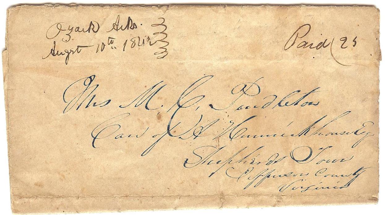 | Ozark | 1842-08-10 | Paid | 25 | Shepard's Town, Jefferson County, Virginia | Ms town name, date, and rate | Ozark AR 1842-08-10 JPalazolo Collection.jpg |