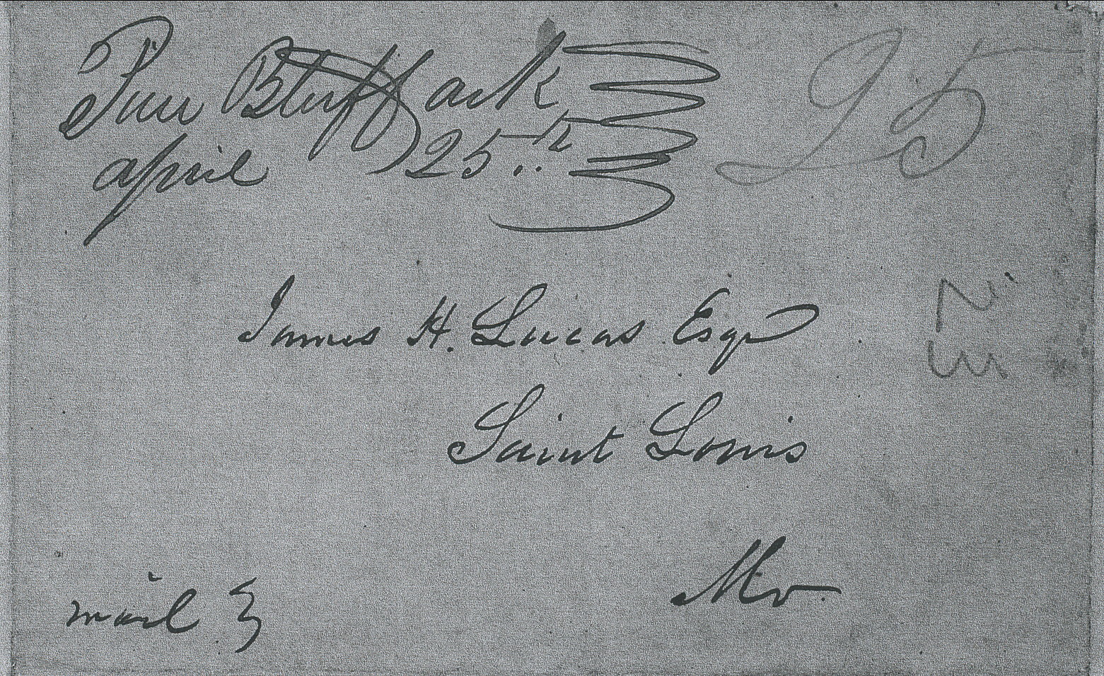 | Pine Bluff | 1839-04-25 | Due | 25 | St. Louis, Missouri | Ms town, date, rate Ark. History Commission Files John Knight MS000136 | Pine Bluff AR 1839-04-25 AHC MS000136 FC1833-39.jpg |