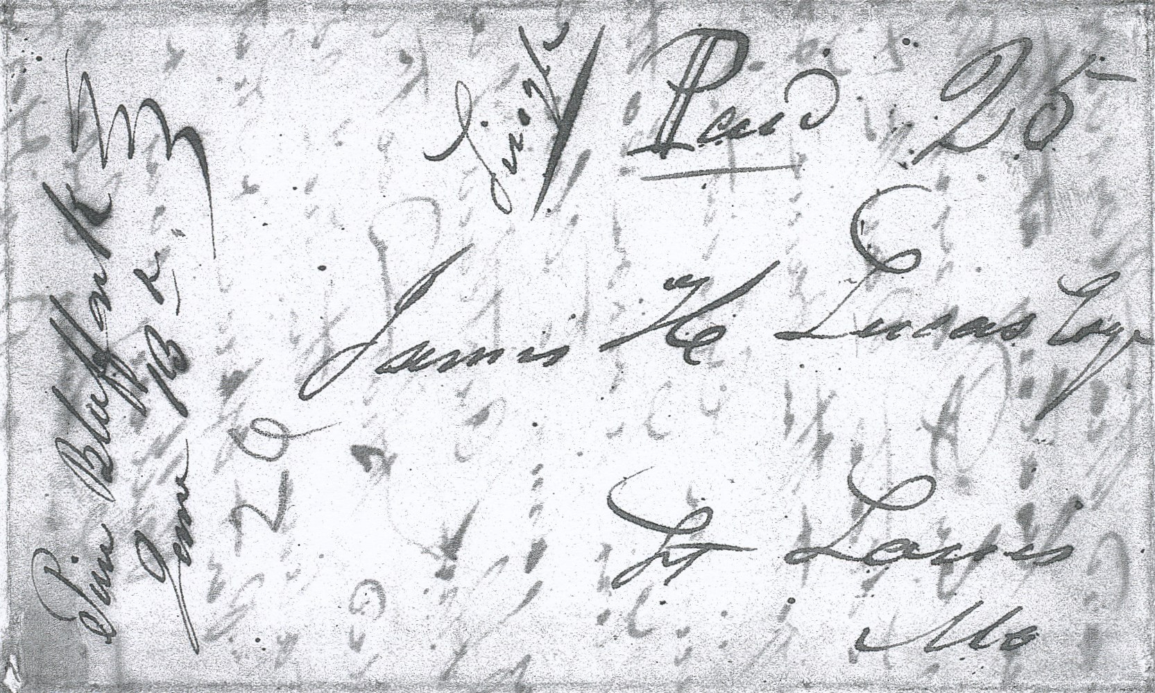 | Saint Marys | 1841-03-10 | Paid | 50 (2x 25c inland to port) | Lyon France | Town name and date on reverse of envelope. In French. Hand carried to Louisville Ky mailed Mar 24 then via NY and Le Harve | St Marys AR 1841-03-10 to France via Louisville KY BRoberts Coll.jpg |