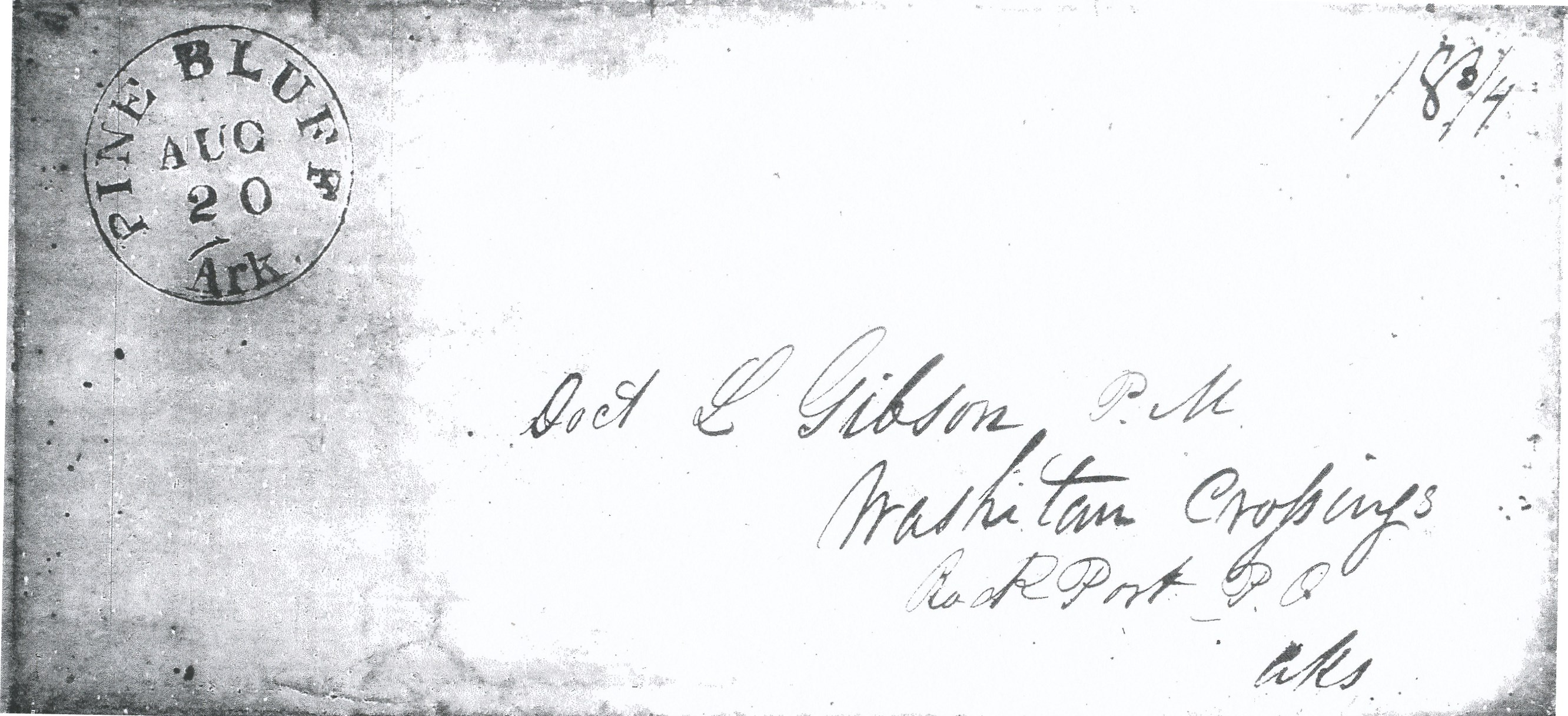 | Pine Bluff | 1842-08-20 | due | 18.75 | Rock Port Arkansas | CDS color not know Ark Hist Comm MG.00135 Lorenzo Gibson | Pine Bluff AR 1842-08-20 AHC MG.00135 Lorenzo Gibson.jpg |