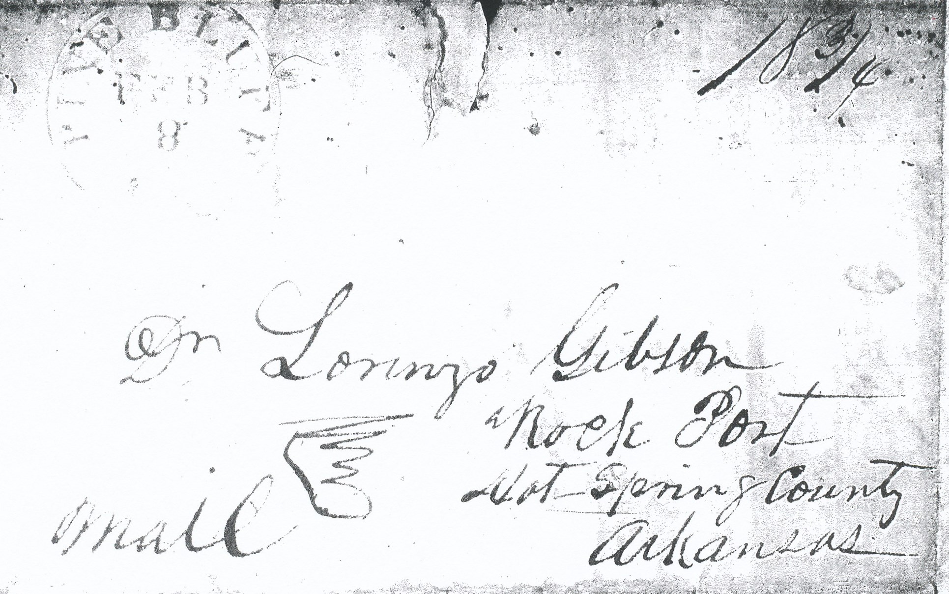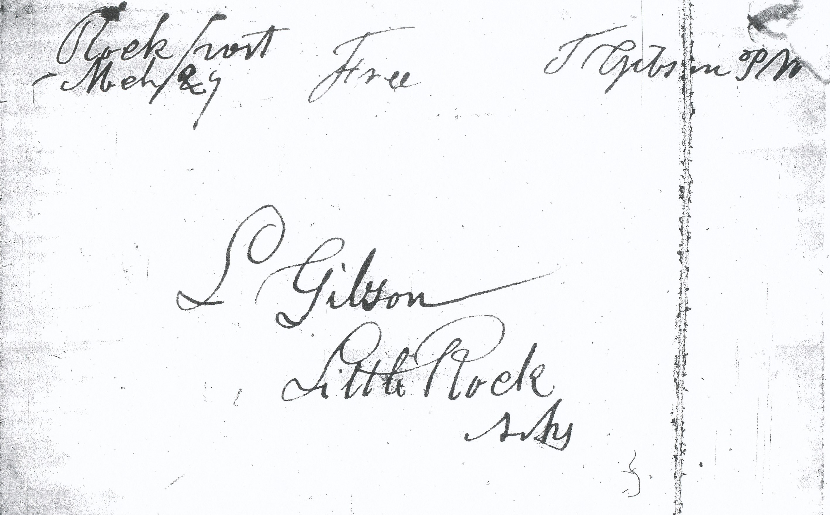 | Rock Port | 1839-03-29 | Free | Postmaster Frank | Little Rock Arkansas | ms town name date rate Ark Hist Comm MG.00135 Lorenzo Gibson | Rock Port AR 1839-03-29 AHC MG.00135 Lorenzo Gibson.jpg |