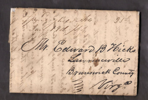 | Spring HIll | 1844-07-19 | Due | 25 | Lawrenceville, Virginia | ms Townname, date, and rate | Spring Hill 1844-07-19 eBay 2012-02-19.jpg |