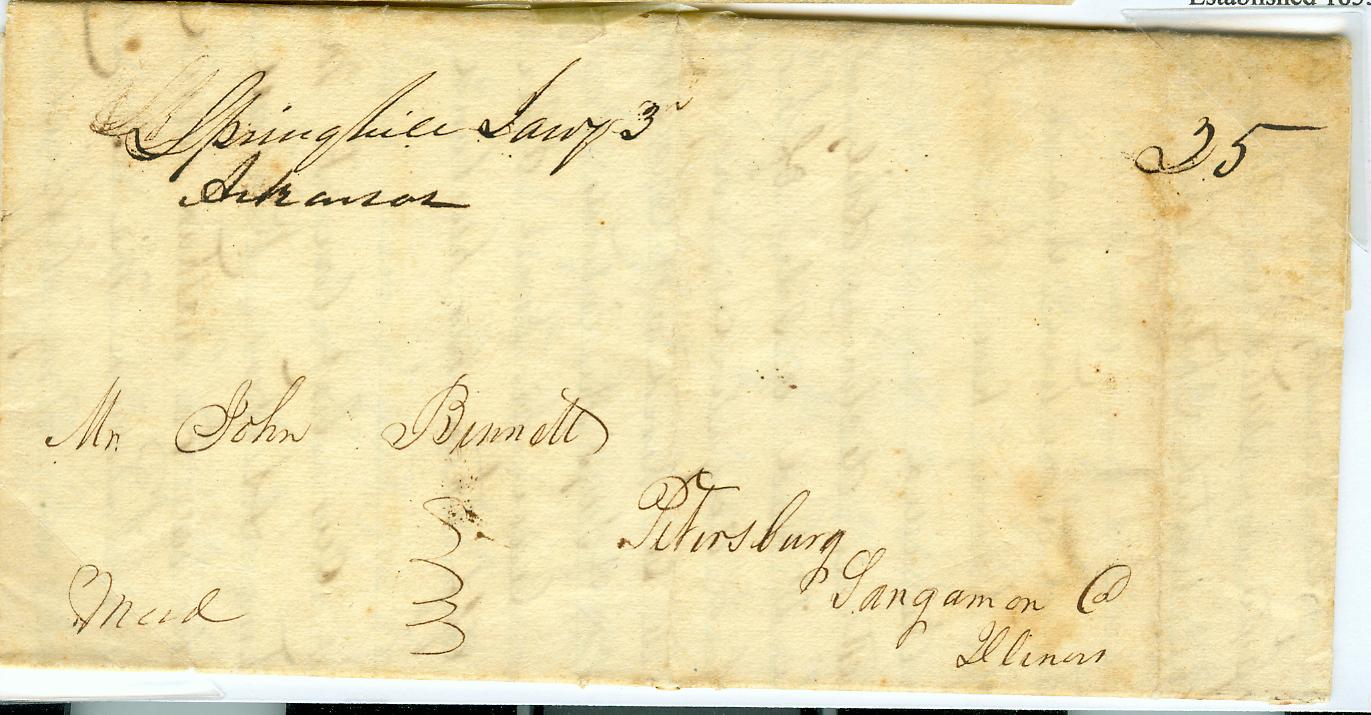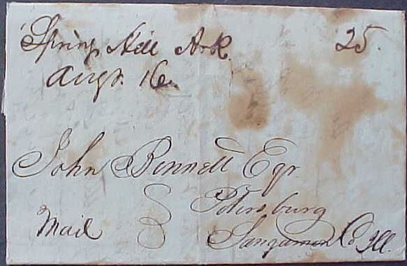| Spring Hill | 1836-08-16 | due | 25 | Petersburg, Illinois | ms town name date rate | Spring Hill AR 1836-08-15 eBay20141119.JPG |
