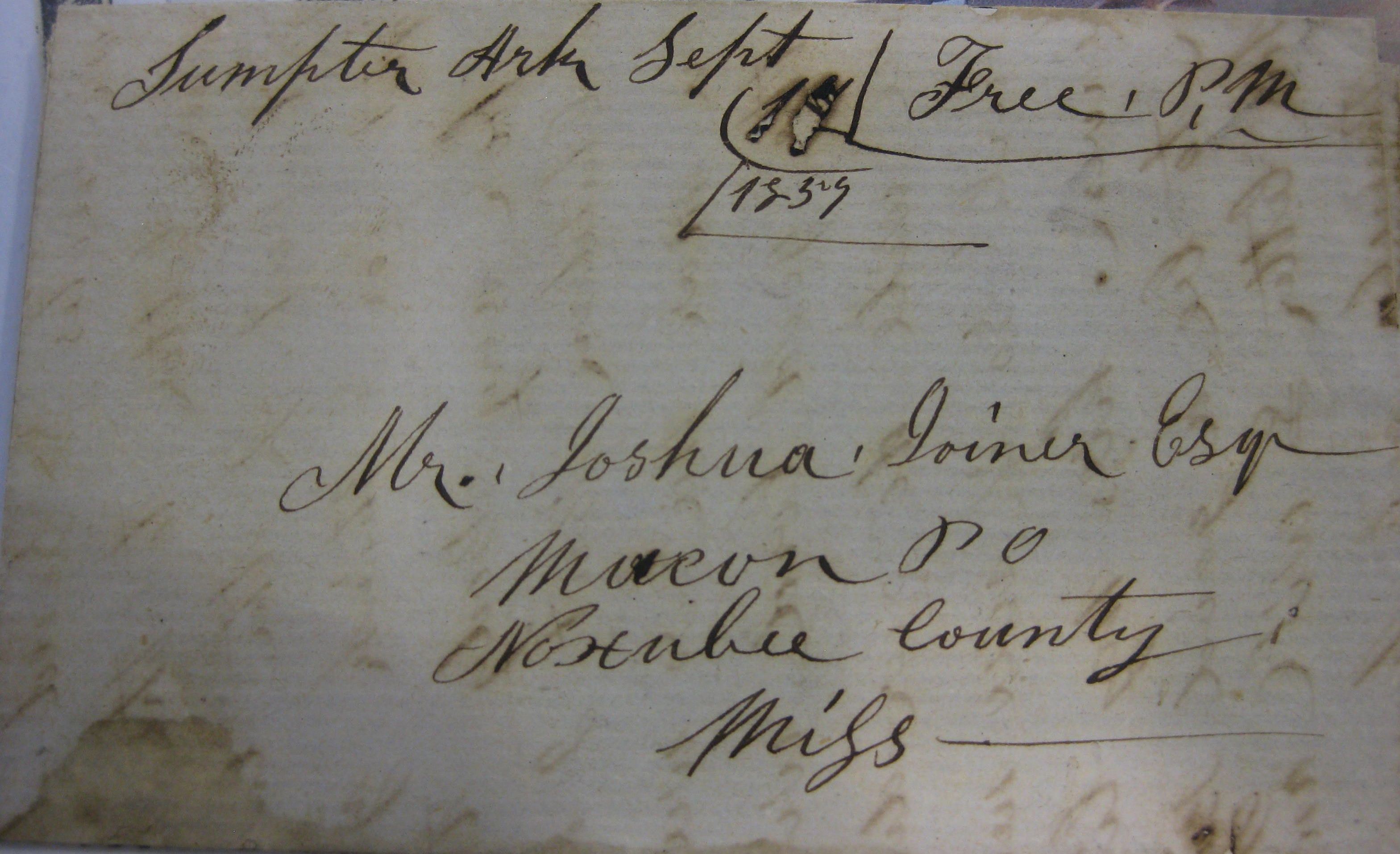| Sumpter | September 14, 1839 | Free | Free | Maron, Mississippi | Manuscript townmark and "Free, PM" markings | Sumpter 9-14-1839 PM Free DTocher_NetPrice_2112011.jpg |