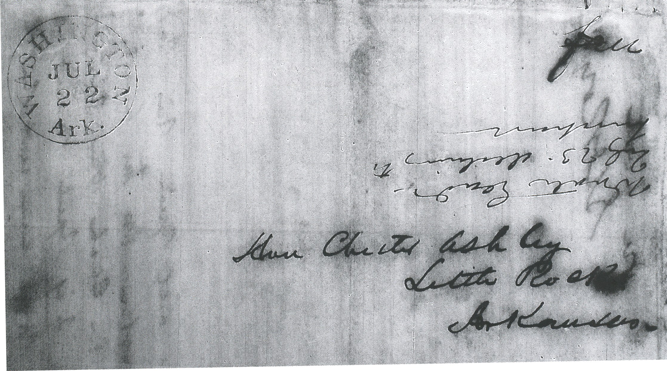 | Arkansas Post | 1848-12-24 | due | 5 | Little Rock Arkansas | ms town name date and rate Ark Hist Comm MS000419 Refeld Family Suppl | Arkansas Post AR 1848-12-24 AHC MS000419 Refeld Family Suppl Dec 1848.jpg |