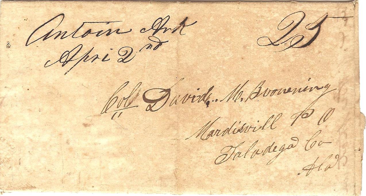 | Antoin | 1839-04-02 | Due | 25 | Mardisvill, Taladega Co, Alabama | ms Town name and date and rate | antoin AR 2april1839 001.jpg |