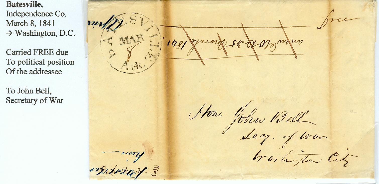 | Batesville | 1841-03-08 | | FREE | Washington, DC | To Secretary of War | batesville 1841 free.jpg |