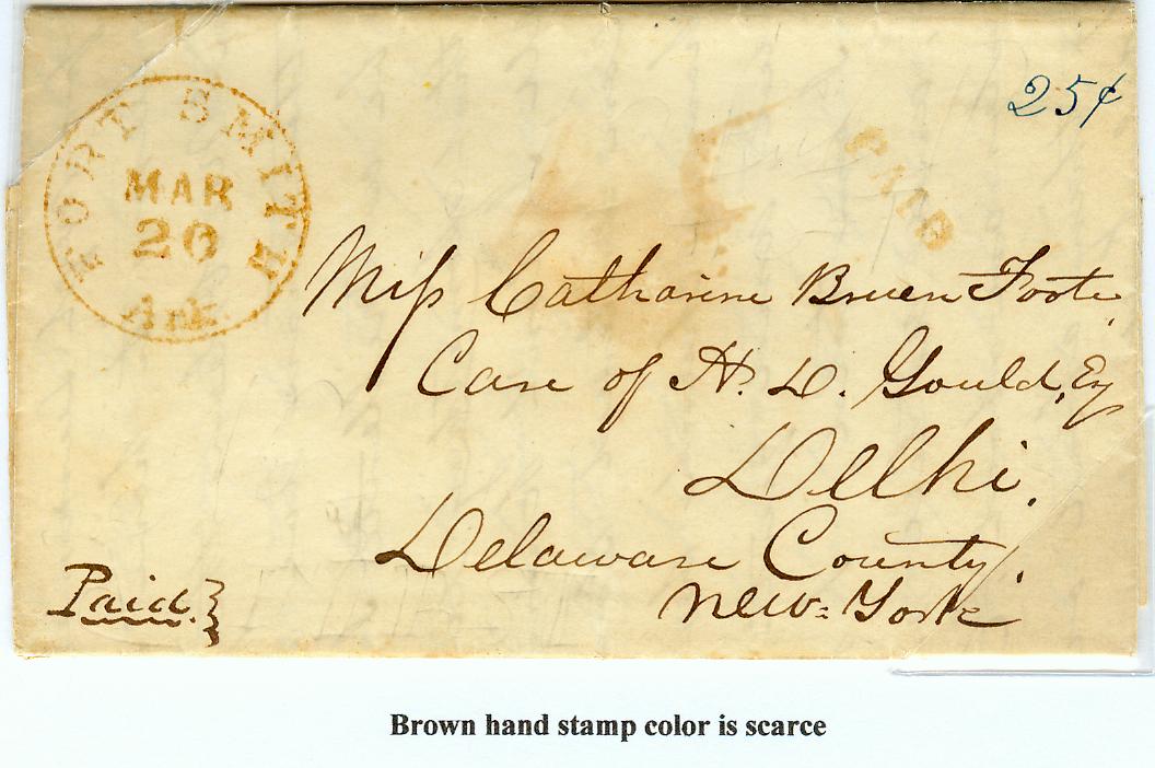 | Fort Smith | 1844-03-20 | Paid | 25 cents | Delhi, NY | Brown Ink CDS and PAID Hsp | fort smith brown cds 1844 25 rate.jpg |