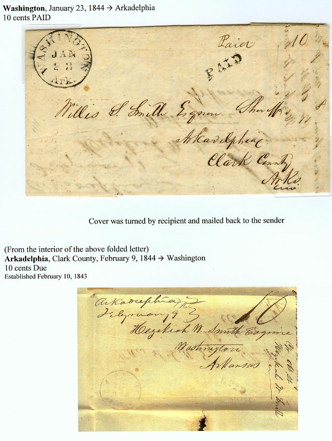 | Washington | 1844-01-23 | PAID | 10 cents | Arkadelphia | Cover turned and sent back to Washington due 10 | washington 1844 10 cent turned cover.jpg |