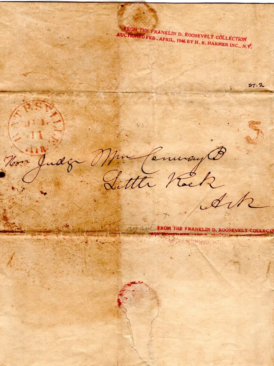 | Batesville | 1848-07-11 | Due | 5 | Little Rock Arkansas | Stamped as from Franklin Roosevelt collection. Red CDS and 5 | Batesville AR 1848-07-11 Red CDS to LR eBay20250220.jpg |