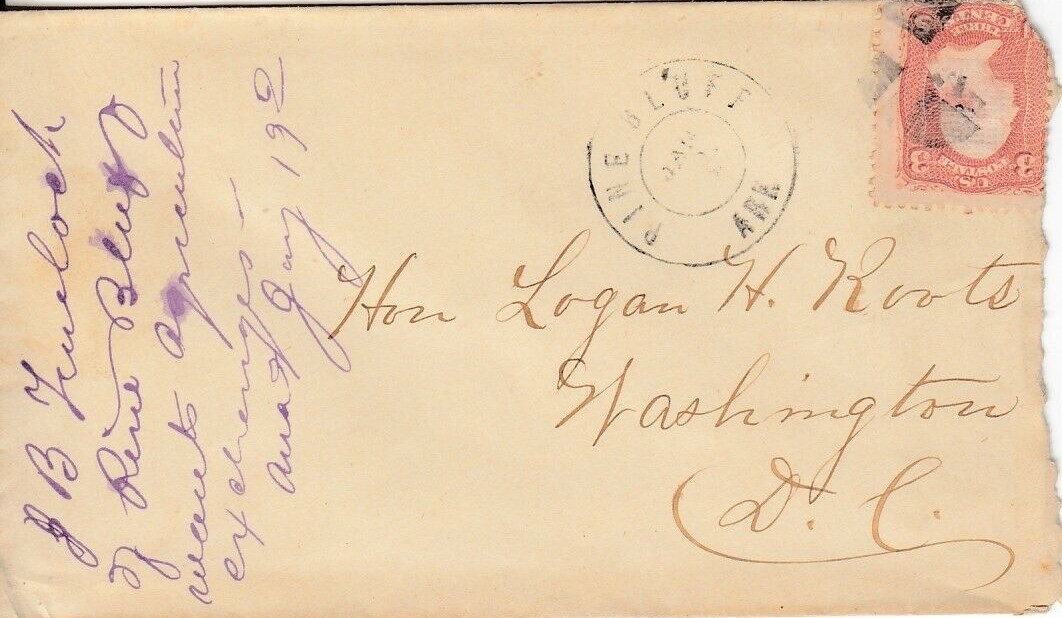 | Pine Bluff | 186x-01-12 | Washington, D.C. | Dbl Circle PM to Logan Roots in D.C. | Pine Bluff AR 186x-01-12 to Logan Roots in DC eBay20210303.jpg |