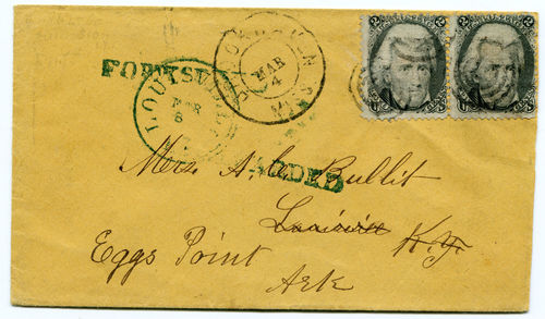 | Little Rock | 1866-03-27 | Louisville, Kentucky | Dbl Circle PM ties Scott #65 | Little Rock AR 1866-03-27 Dbl Circle CDS to KY eBay20210406.jpg |