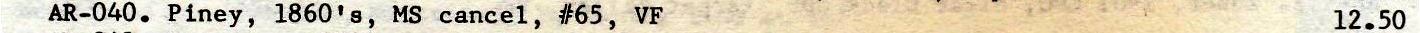 | Piney | 186x | Not Given | (Auction Text Only) ms town and ms cancel ties #65 | Piney AR 186x #65 EDoubleday 1985-01-10 Winter 85 List .jpg |