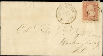 | Rocky Comfort | 186x-12-29 | Washington, DC | Black CDS, black target cancel ties 3c adhesive letter to P.P.Pitchlynn | Rocky Comfort 12-29-186x to Pichlynn in DC eBay 6-6-11.jpg |