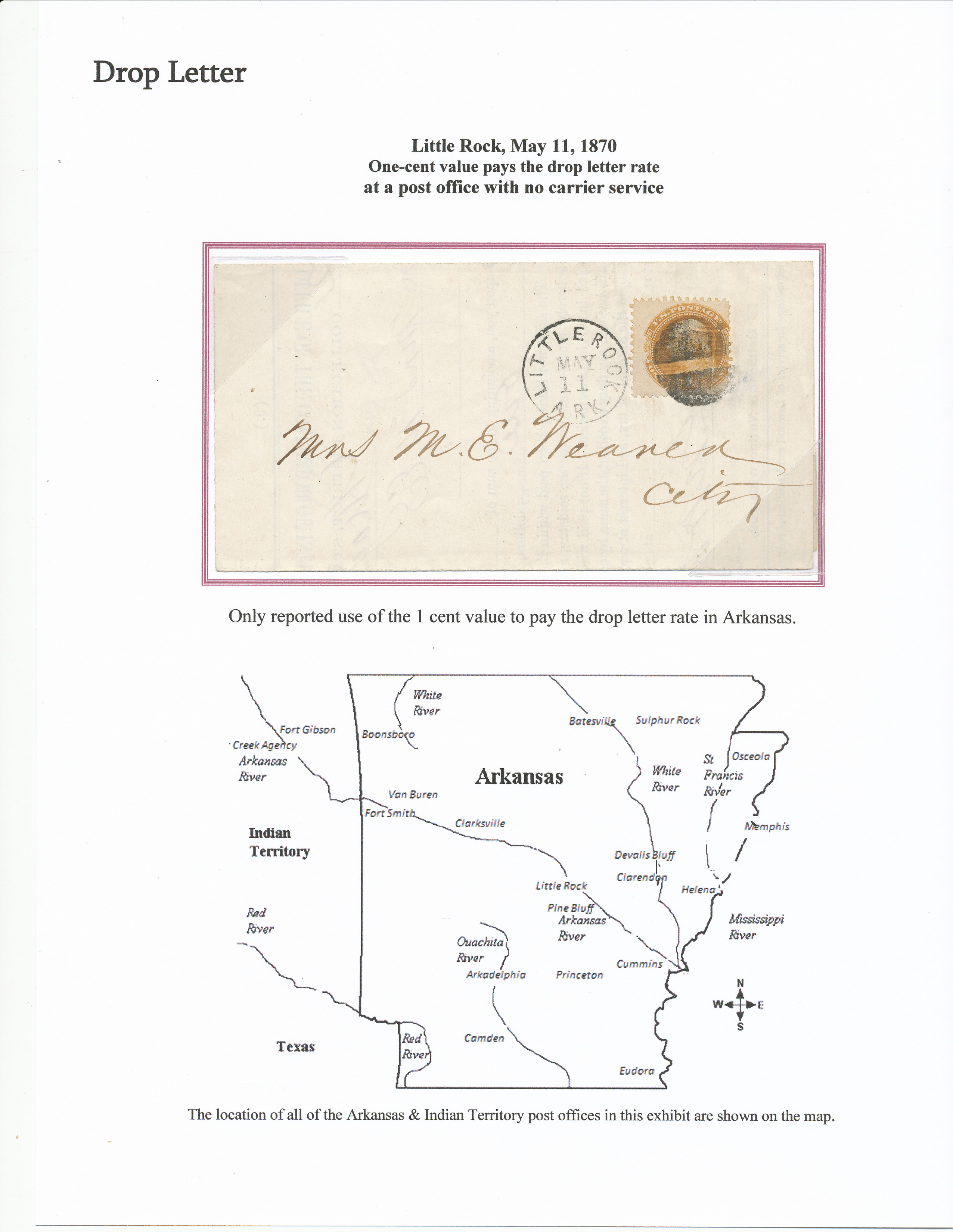 One Cent used on Drop Letter in Little Rock