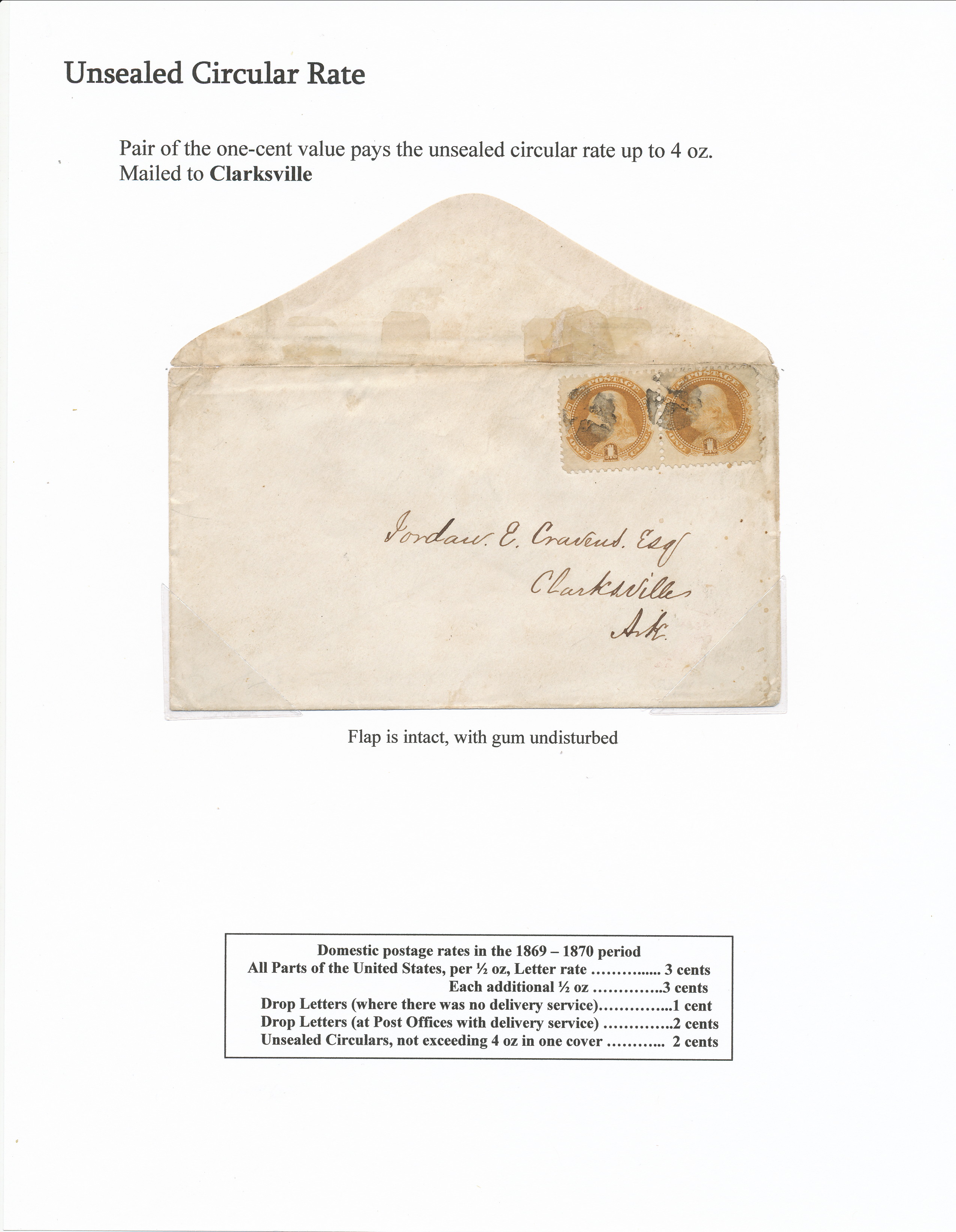 Pair of one cent on unsealed circular to Clarksville