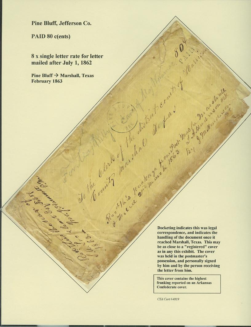 | 4 | Stampless: Pine Bluff PAID Hsp 80 c ms, highest rated Confederate cover reported from Arkansas | f07p04.jpg |