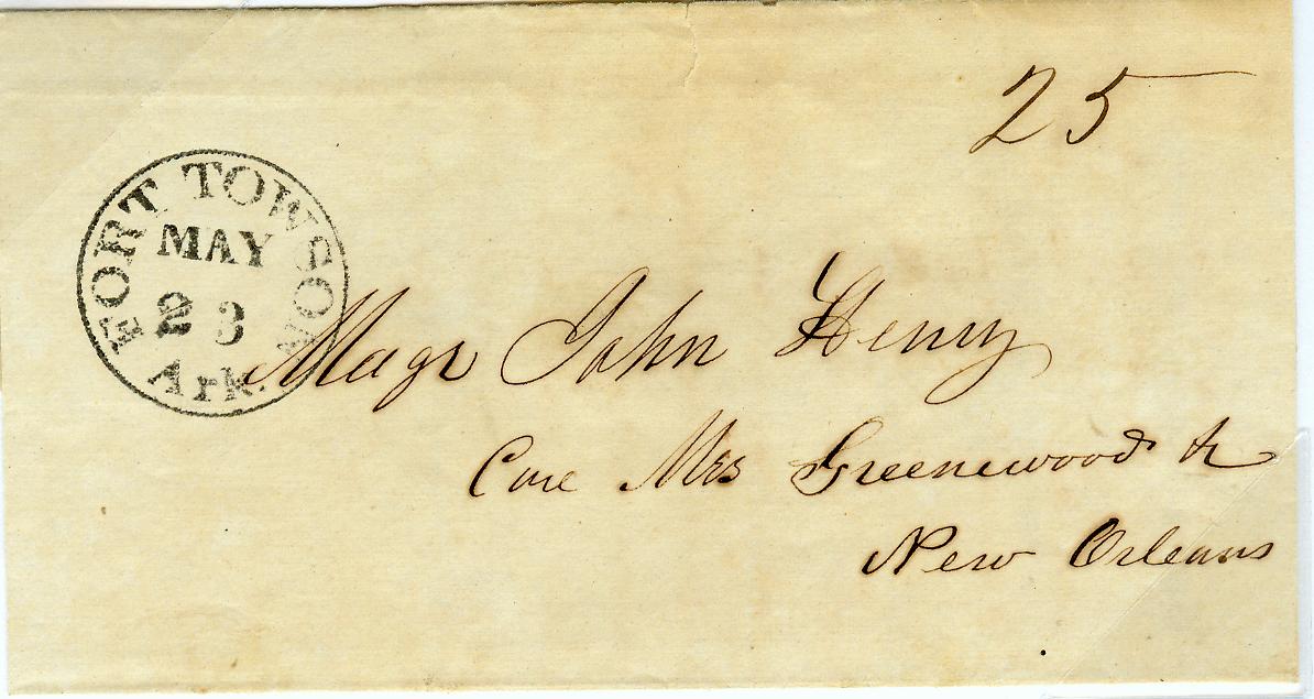 | 1844-05-23 | New Orelans Louisiana | Black CDS,FORT TOWSON/MAY/23/ARK ms "25" due | Fort Towsond Ark 1844-05-23 BRoberts Coll.jpg |