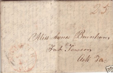 | 1839-02-11 | Boston Massachusetts | Black CDS, manuscript "25" (due) rate | Fort Towson AR 1839-02-11 ebay 4-11-09.jpg |